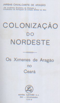 Veja como escreve o Jarbas Cavalcante de Aragão no seu livro Colonização do Nordeste, impresso na Editôra Laudes S.A. Rio - Guanabara, em 1969 e com a dedicatória abaixo.